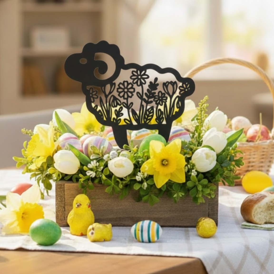 Wprowadź świąteczny i nowoczesny akcent do swojego domu dzięki temu uroczemu barankowi z MDF jednostronnie laminowanego na czarno! Figurka ma 10 cm wysokości i stabilną podstawkę, dzięki czemu świetnie sprawdzi się jako dekoracja stołu, półki czy koszyczka wielkanocnego.