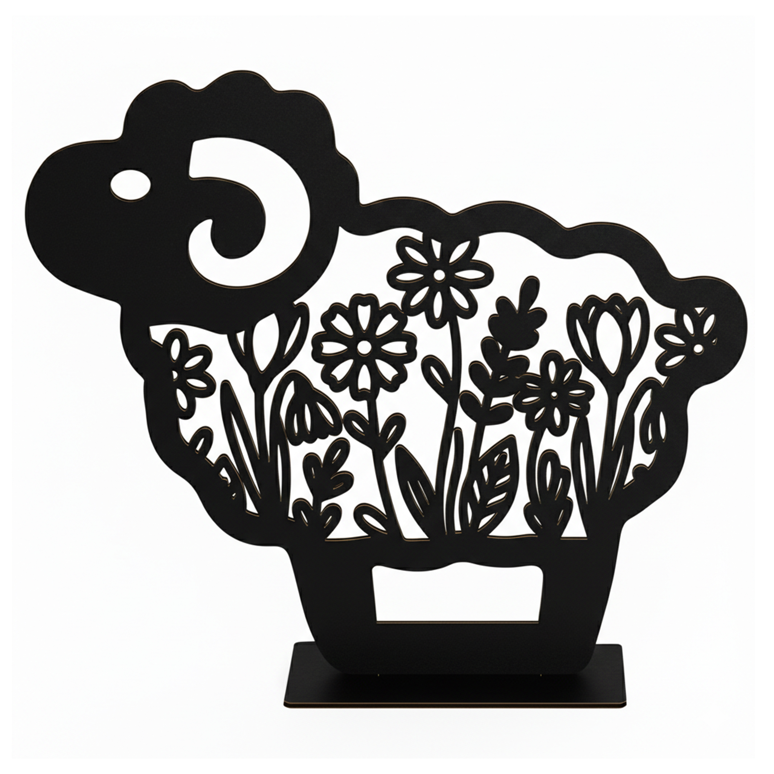 Wprowadź świąteczny i nowoczesny akcent do swojego domu dzięki temu uroczemu barankowi z MDF jednostronnie laminowanego na czarno! Figurka ma 15 cm wysokości i stabilną podstawkę, dzięki czemu świetnie sprawdzi się jako dekoracja stołu, półki czy koszyczka wielkanocnego.