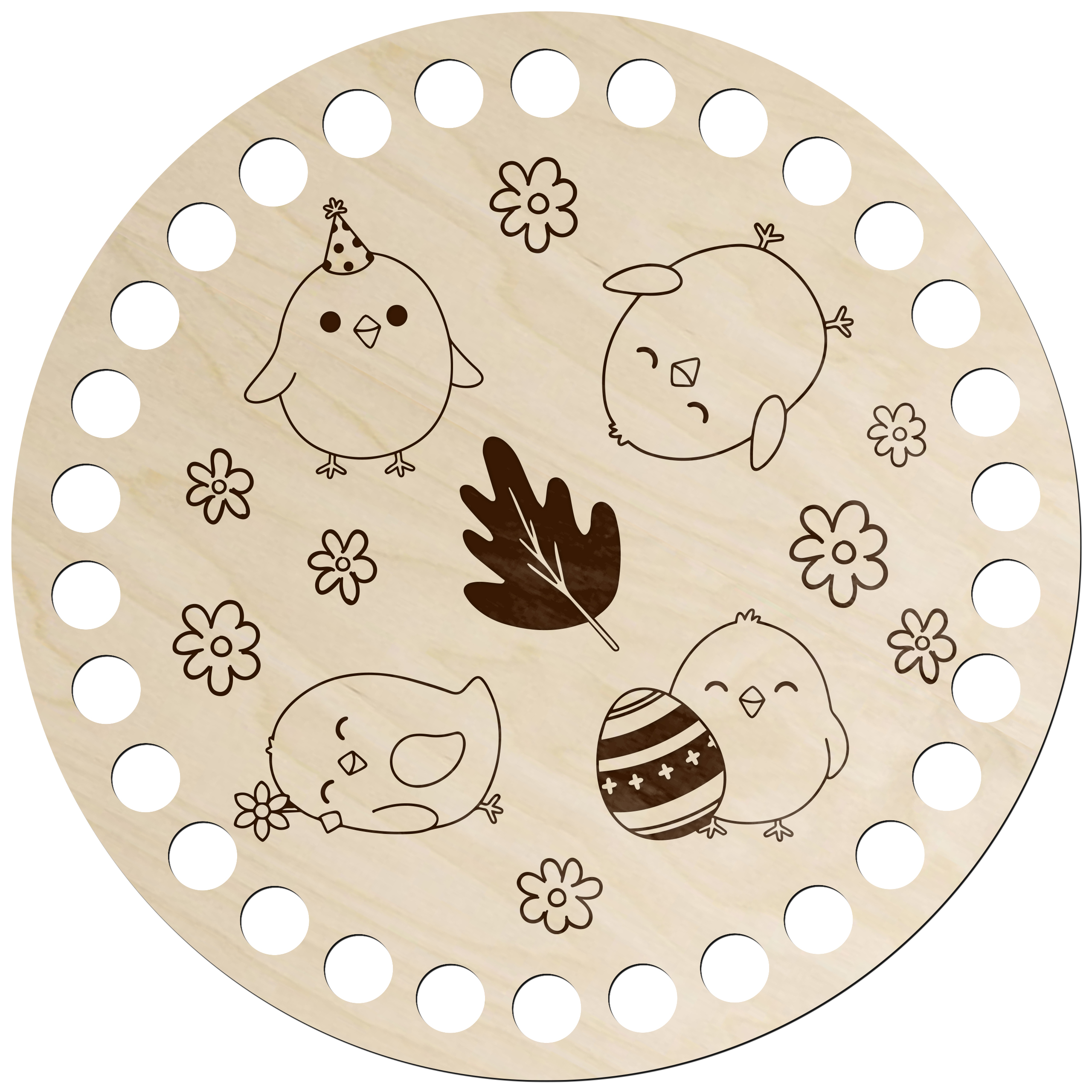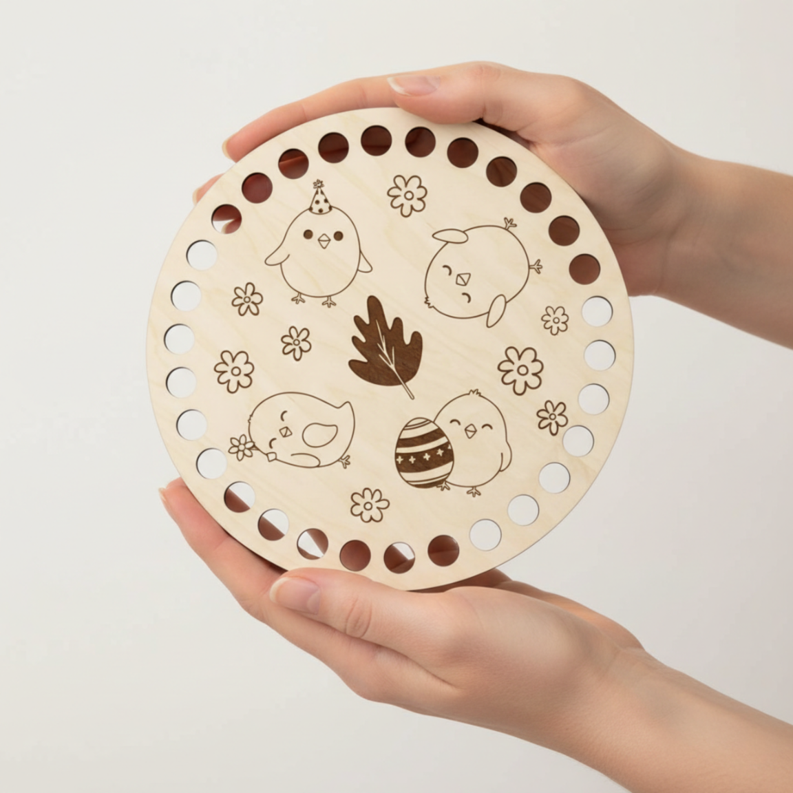 Drewniana baza do szydełkowania z wielkanocnym grawerem to wyjątkowy dodatek do rękodzieła, który pozwoli stworzyć niepowtarzalne dekoracje świąteczne. Wykonana z naturalnej sklejki brzozowej o średnicy 15 cm, zachwyca estetyką, precyzją wykonania i świątecznym charakterem.