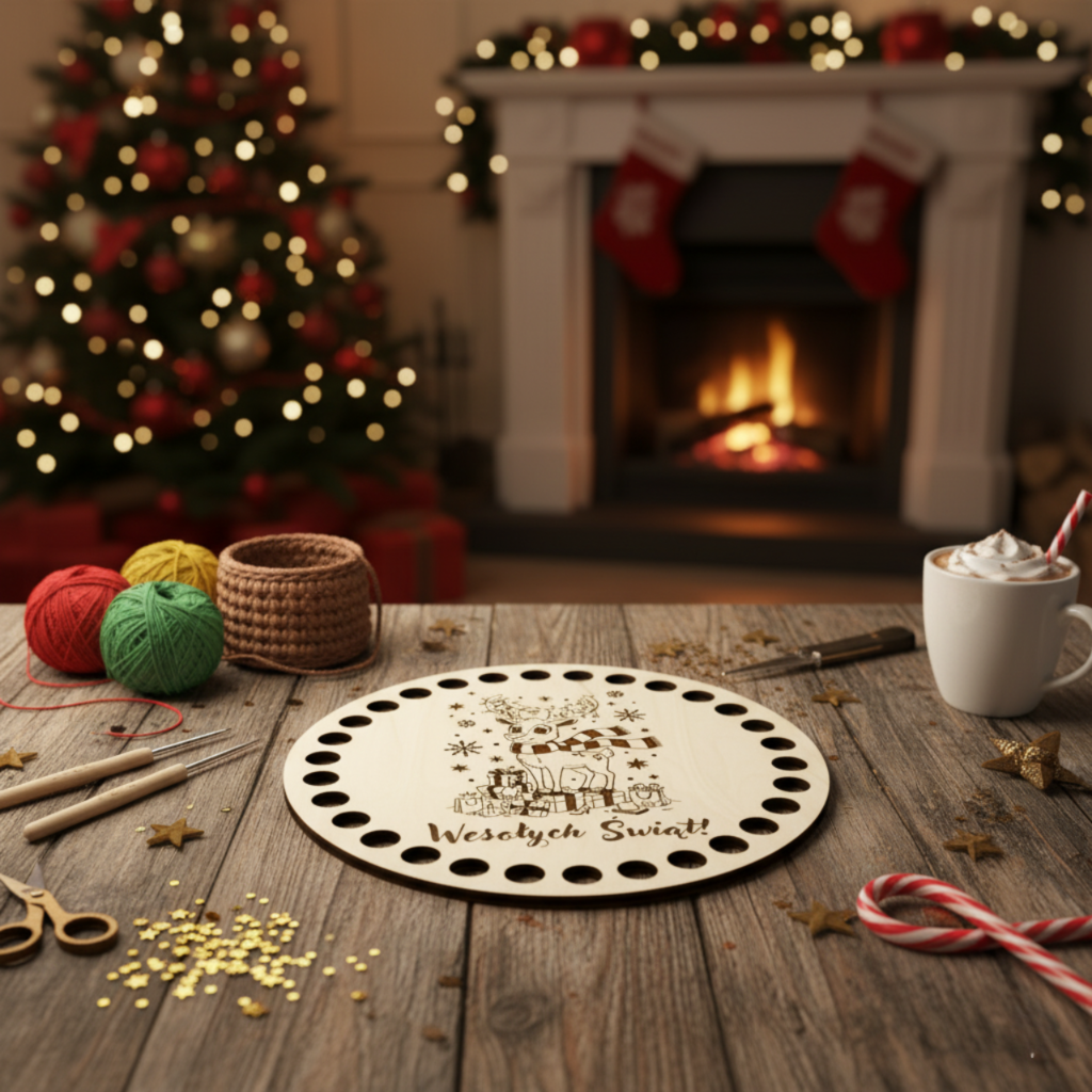 Ta okrągła baza ze sklejki o średnicy 15 cm ze świątecznym wzorem to doskonała propozycja dla miłośników rękodzieła, szydełkowania i dekoracji DIY. Dzięki precyzyjnie wykonanym otworom możesz łatwo przewlekać nici, wstążki czy sznurki, tworząc unikalne dekoracje świąteczne. Ozdobny motyw nadaje projektom wyjątkowego charakteru, dzięki czemu gotowe prace będą pięknie prezentować się na choince, w oknach, na stole czy jako element świątecznego stroika.