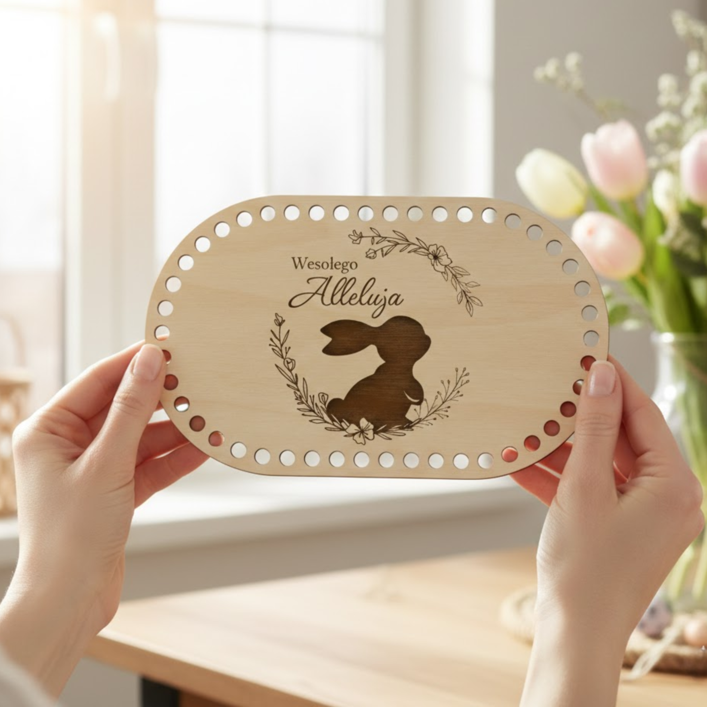Drewniana baza wielkanocna do szydełkowania w kształcie owalu to idealna podstawa do tworzenia drobnych, ręcznie robionych dekoracji świątecznych. Naturalne drewno i precyzyjne wycięcia sprawiają, że praca z nią jest łatwa i przyjemna.