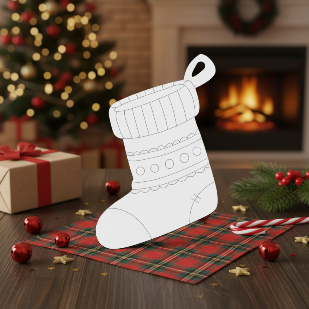 BIAŁA Ozdoba Bombka Świąteczna na Choinkę Skarpeta do Malowania na Prezent