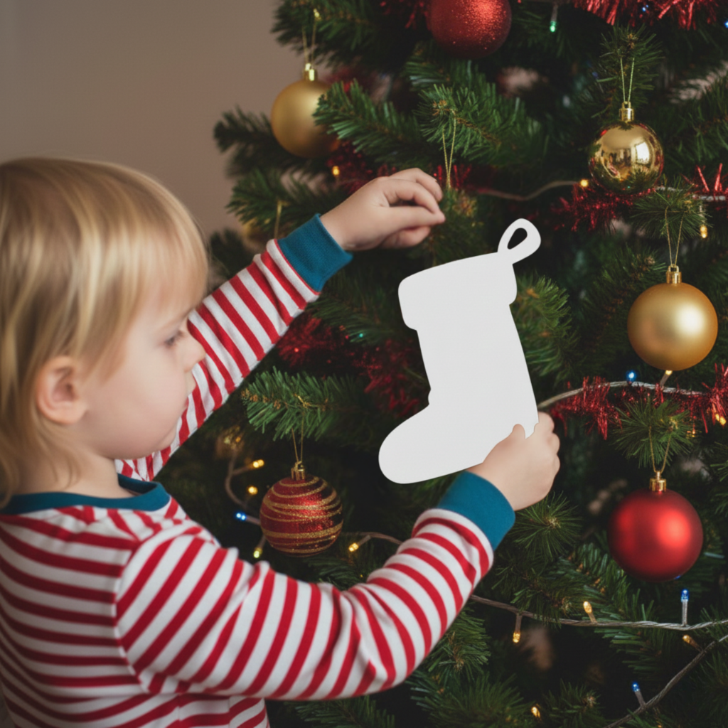 Bombka Zawieszka Świąteczna Skarpeta na Choinkę Kominek BIAŁA dla Dzieci