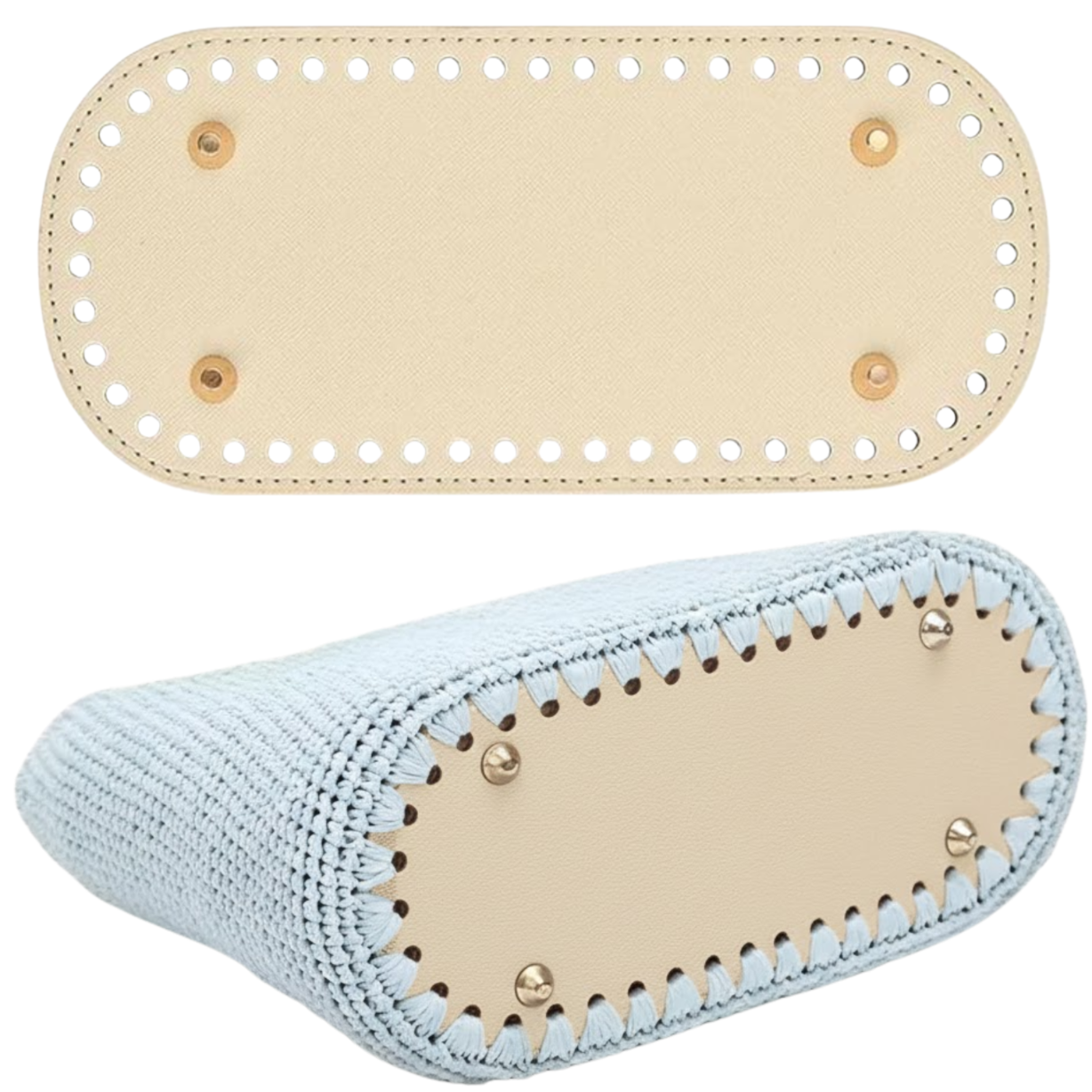 Praktyczny spód do torebki szydełkowej wykonany z wysokiej jakości skóry PU to idealna baza do tworzenia trwałych i estetycznych projektów handmade. Zapewnia stabilność, elegancki wygląd i długą żywotność ręcznie robionej torby.