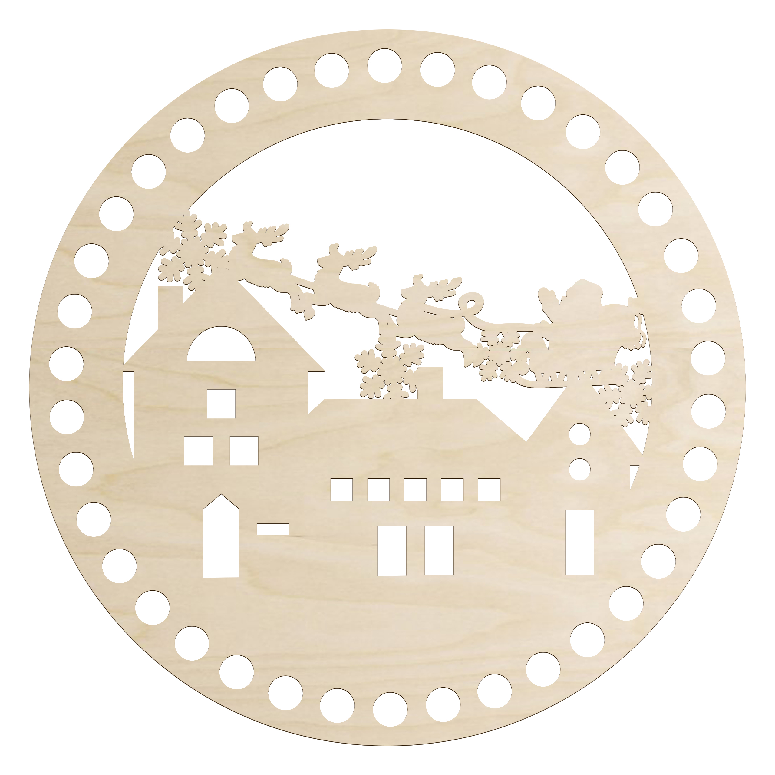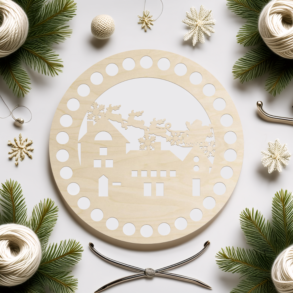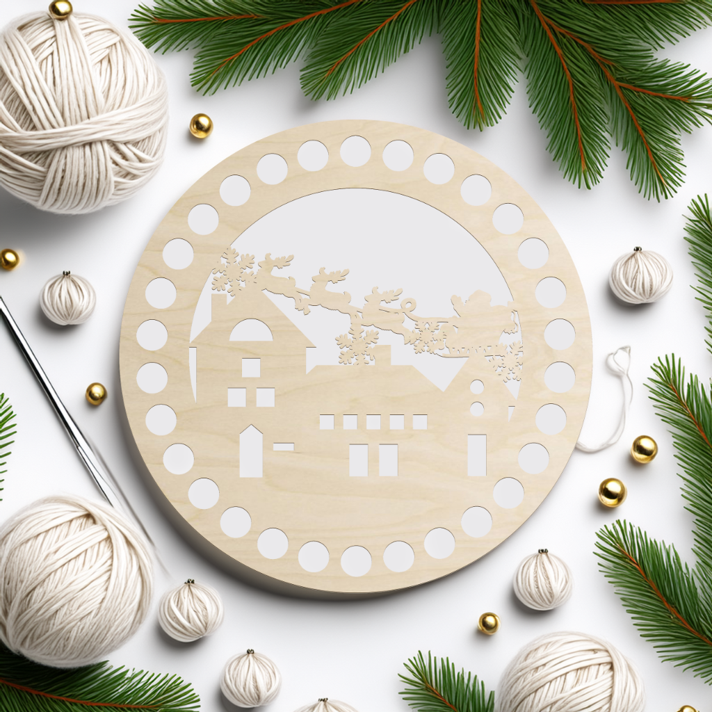 Ta drewniana baza do szydełkowania w kształcie okręgu ze świątecznym wzorem to idealny element do tworzenia niepowtarzalnych dekoracji bożonarodzeniowych. Dzięki precyzyjnie wyciętym otworom możesz szybko i wygodnie obrobić ją włóczką lub sznurkiem, a ozdobny wzór sprawi, że każda praca nabierze wyjątkowego charakteru.