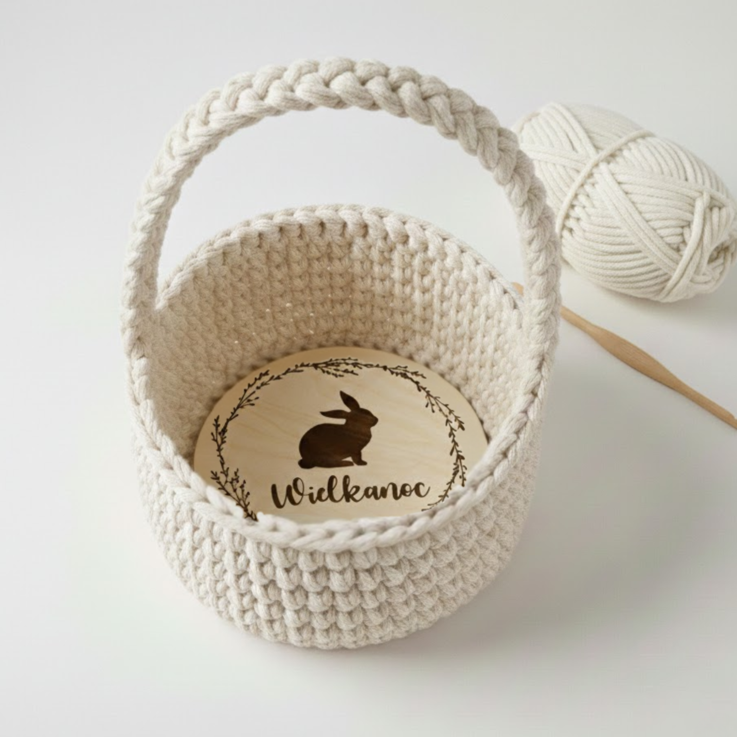 Drewniana Baza Wielkanocna do Szydełkowania ZAJĄCZEK SPÓD koszyka Makrama