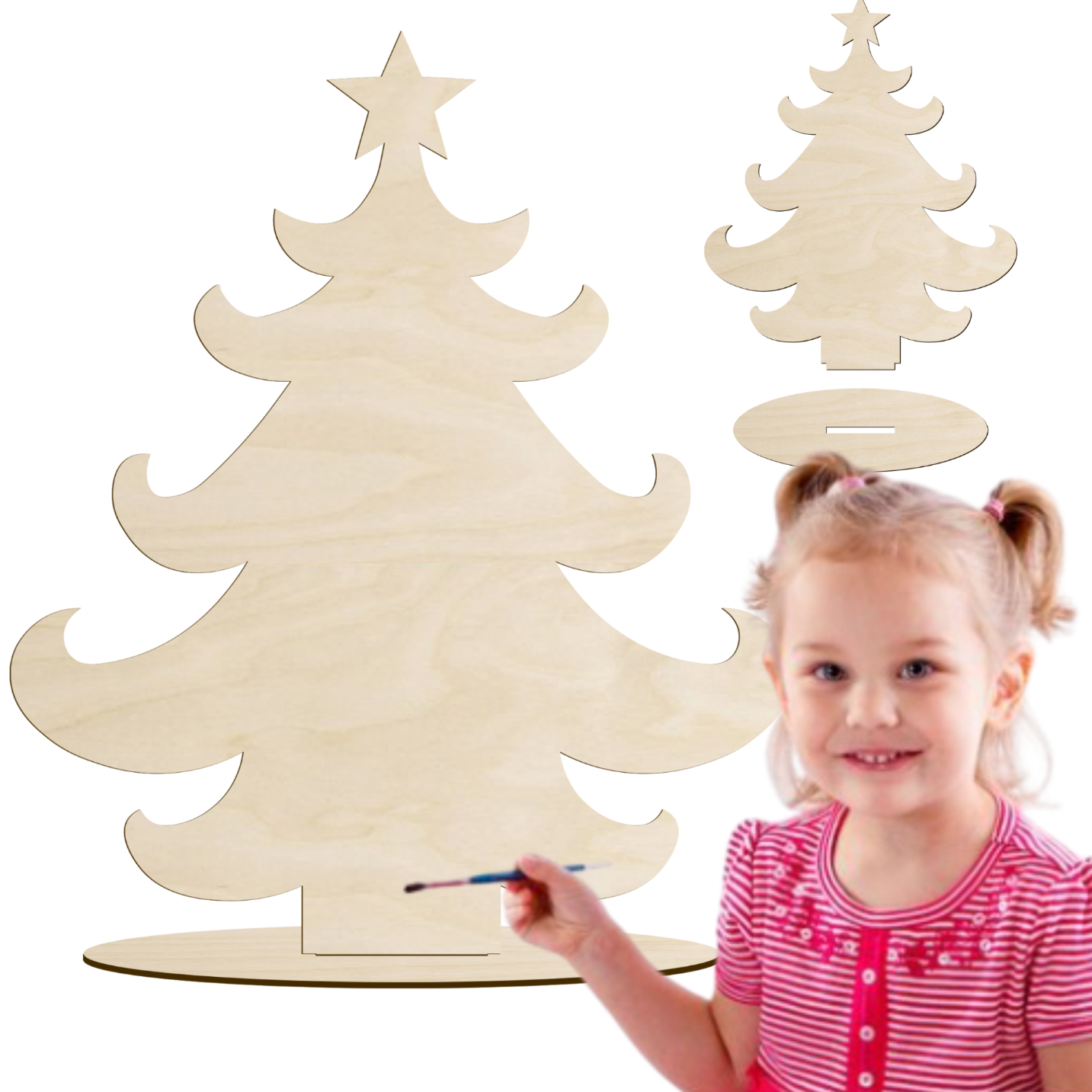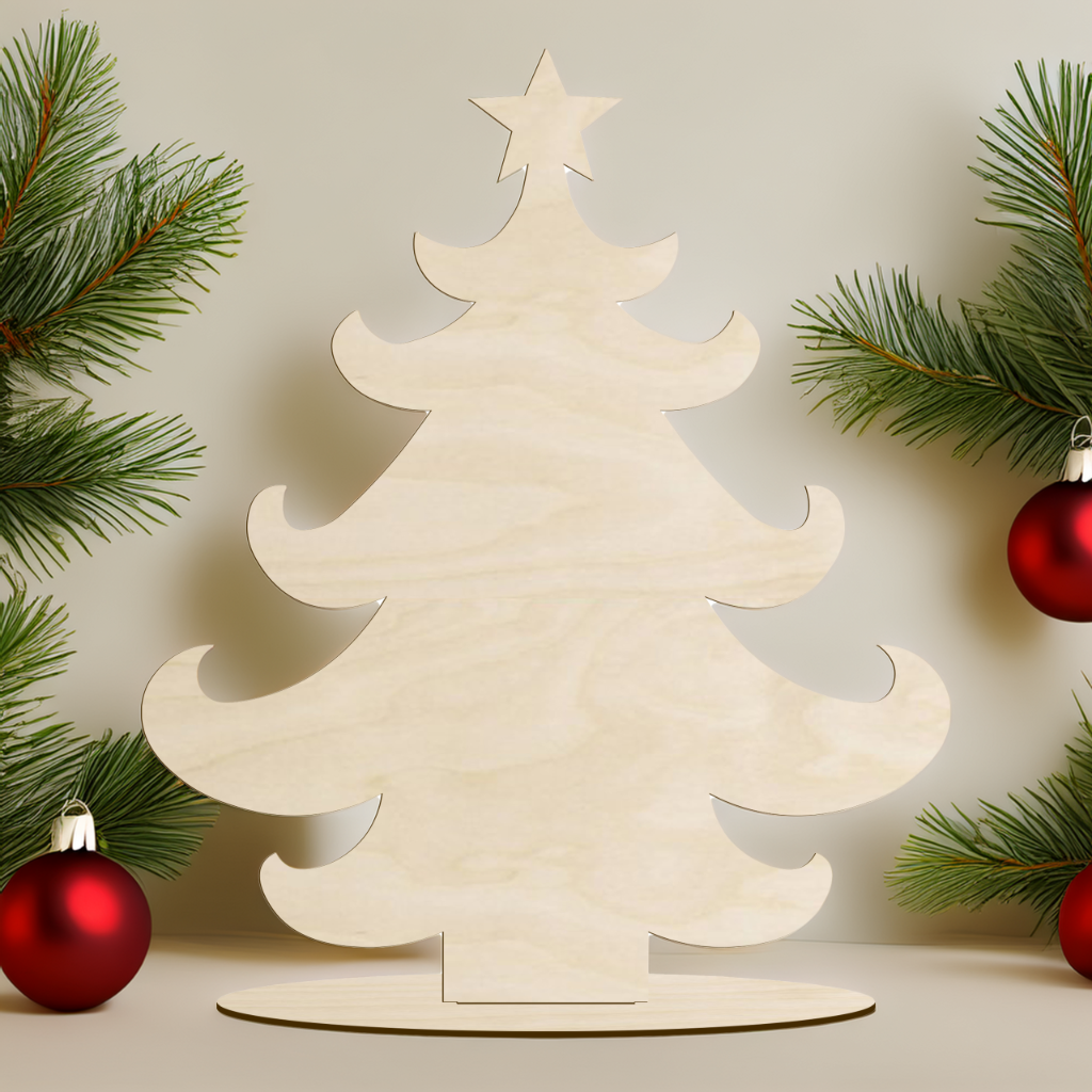 Ta drewniana choinka ze sklejki na podstawce to idealna baza dla miłośników rękodzieła, którzy chcą stworzyć własną, wyjątkową dekorację świąteczną. Dzięki naturalnemu, prostemu wzorowi możesz ją dowolnie ozdabiać farbami, markerami, brokatem lub techniką decoupage, tworząc unikalny element dekoracyjny do swojego domu.