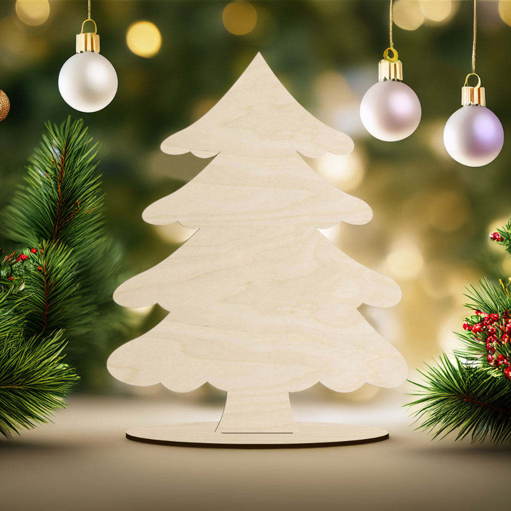 Ta drewniana choinka ze sklejki na podstawce to idealna baza dla miłośników rękodzieła, którzy chcą stworzyć własną, wyjątkową dekorację świąteczną. Dzięki naturalnemu, prostemu wzorowi możesz ją dowolnie ozdabiać farbami, markerami, brokatem lub techniką decoupage, tworząc unikalny element dekoracyjny do swojego domu.