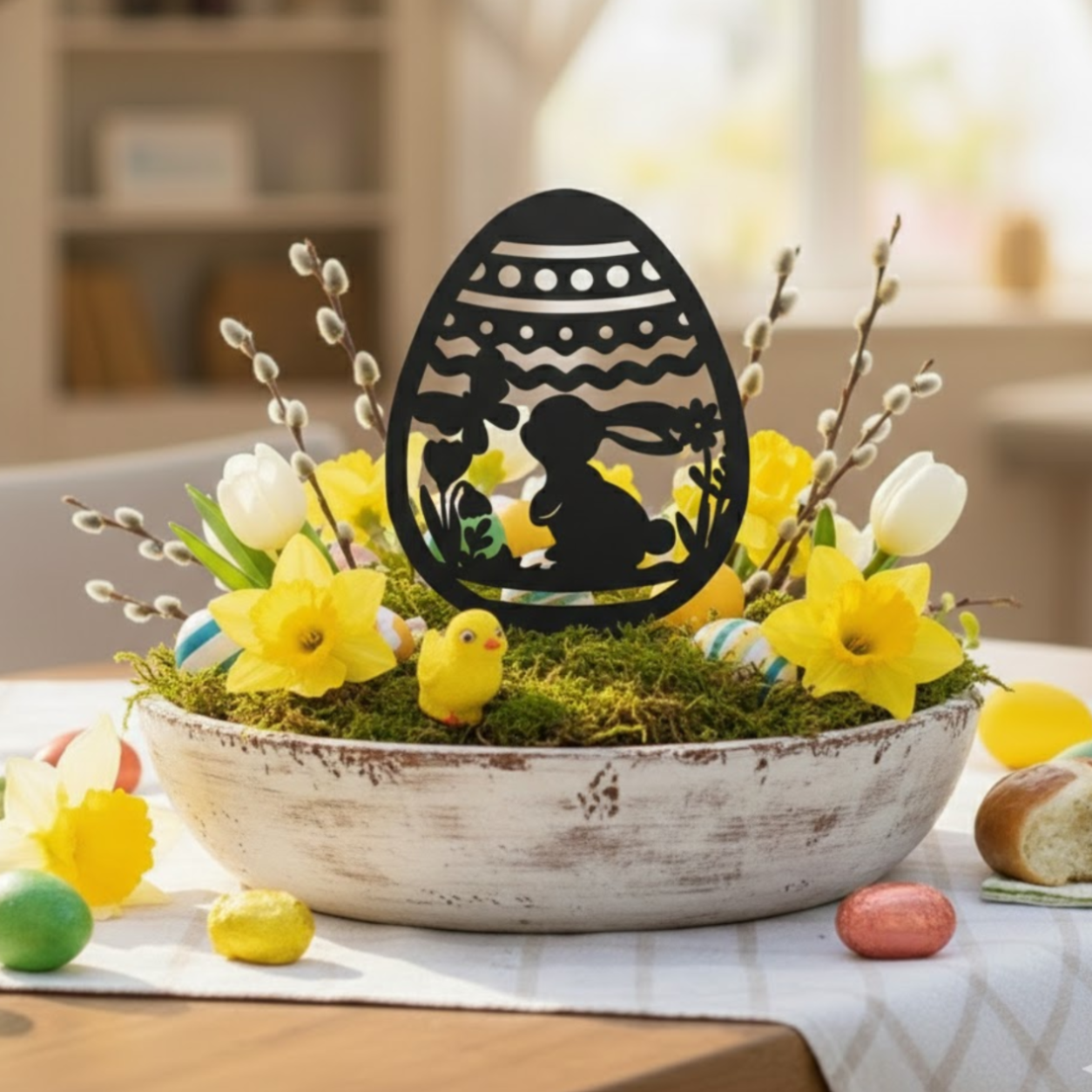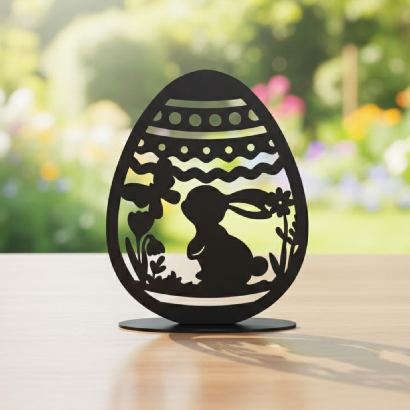 Minimalistyczne, a jednocześnie bardzo efektowne jajko wielkanocne wykonane z MDF jednostronnie laminowanego na czarno to idealny dodatek do nowoczesnych i klasycznych aranżacji świątecznych. Prosta forma i głęboka czerń sprawiają, że figurka pięknie wyróżnia się wśród wiosennych dekoracji.