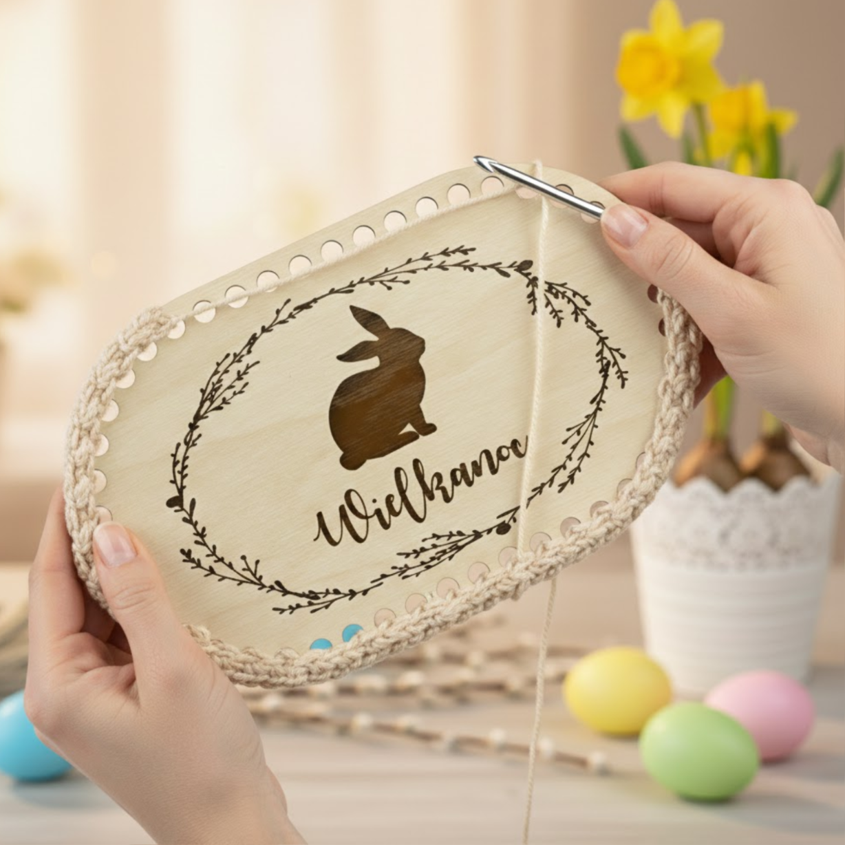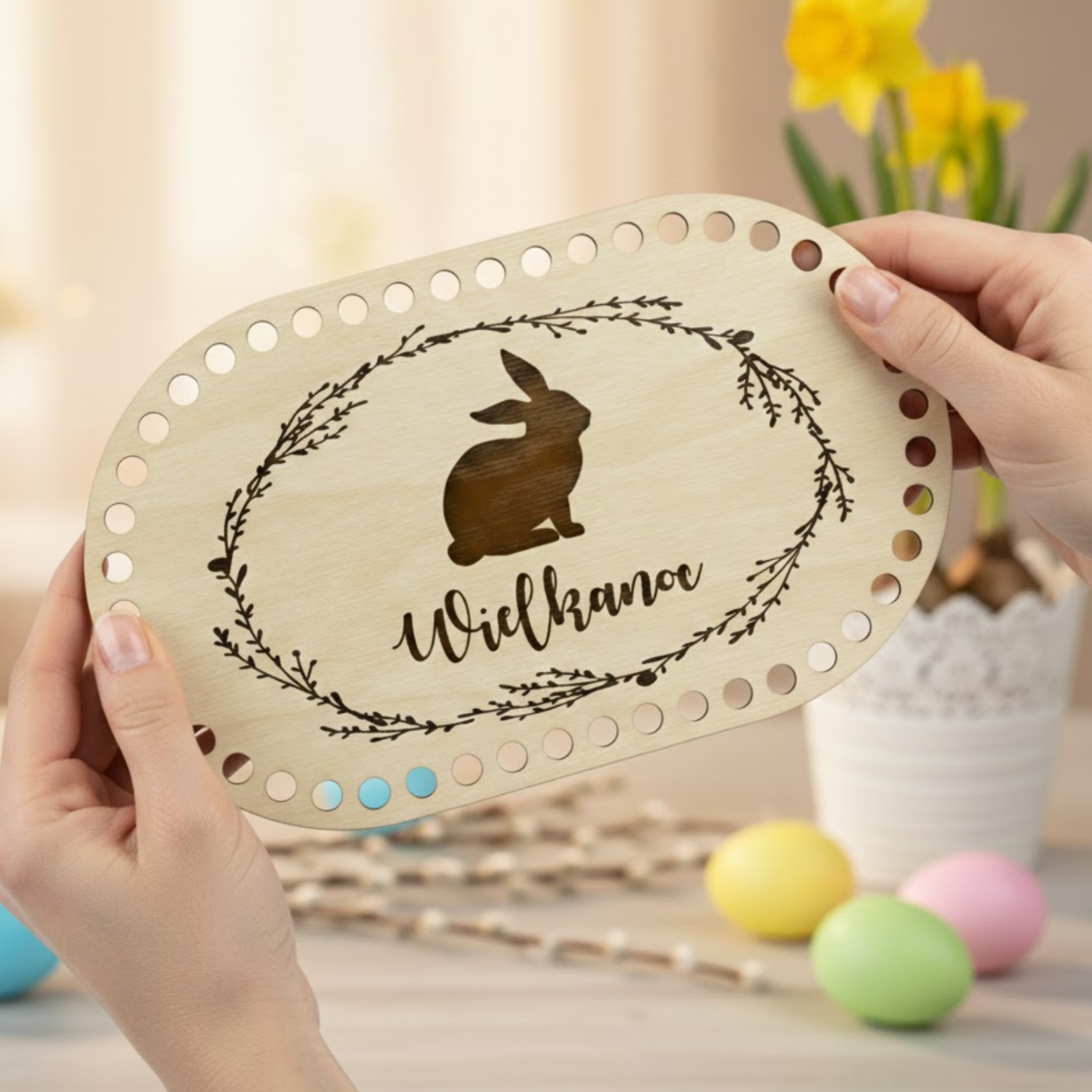 Drewniana baza wielkanocna do szydełkowania w kształcie owalu to idealna podstawa do tworzenia drobnych, ręcznie robionych dekoracji świątecznych. Naturalne drewno i precyzyjne wycięcia sprawiają, że praca z nią jest łatwa i przyjemna.