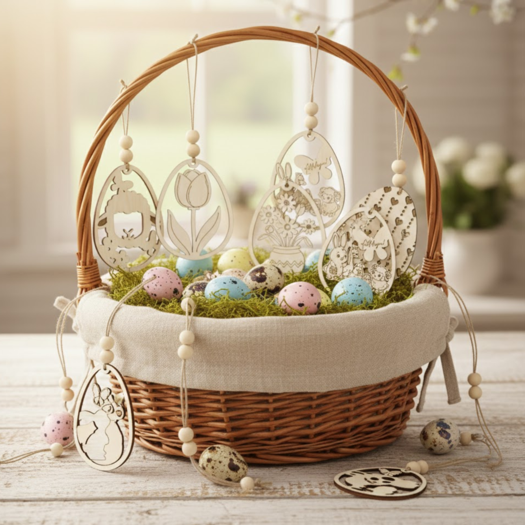 ⭐ Ozdoby na prezenty – przywiąż pisankę do wstążki prezentowej, aby dodać osobistego i świątecznego akcentu.