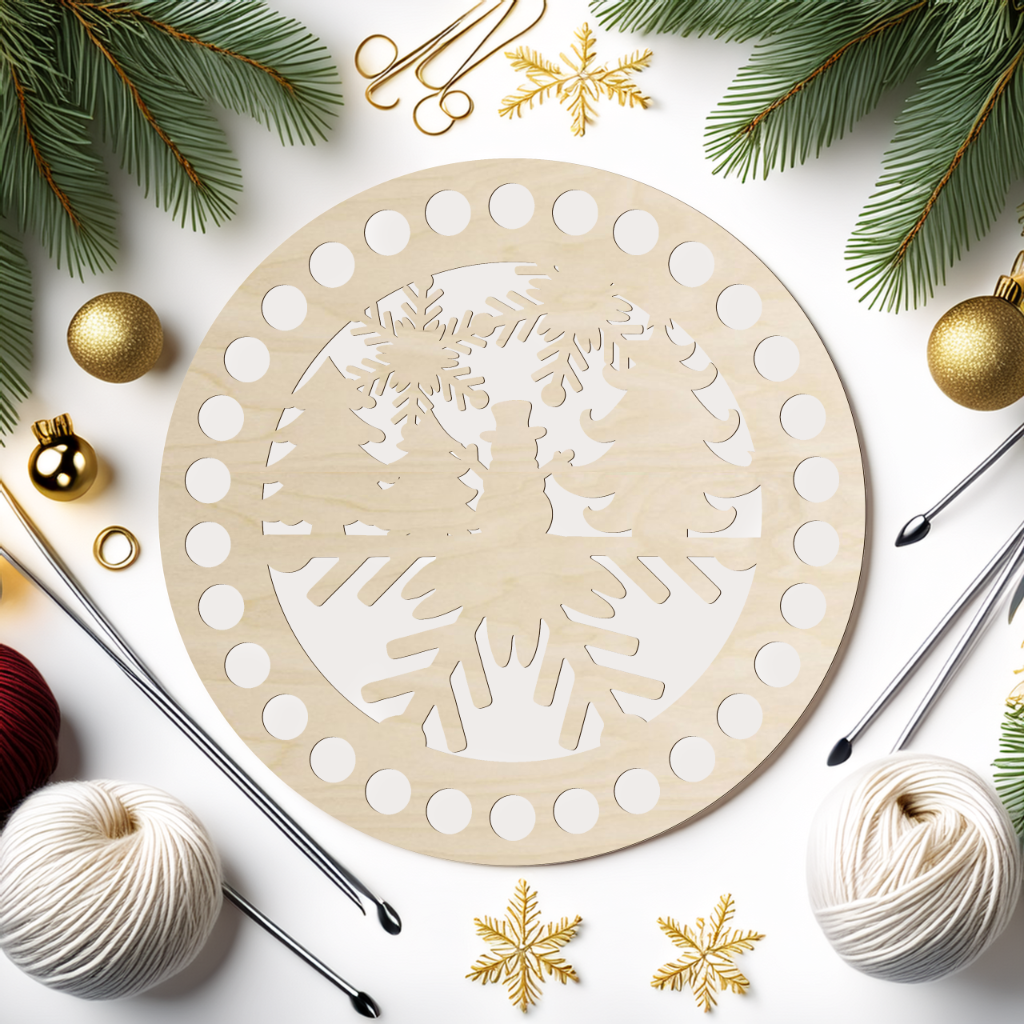 Ta drewniana baza do szydełkowania w kształcie okręgu ze świątecznym wzorem to idealny element do tworzenia niepowtarzalnych dekoracji bożonarodzeniowych. Dzięki precyzyjnie wyciętym otworom możesz szybko i wygodnie obrobić ją włóczką lub sznurkiem, a ozdobny wzór sprawi, że każda praca nabierze wyjątkowego charakteru.