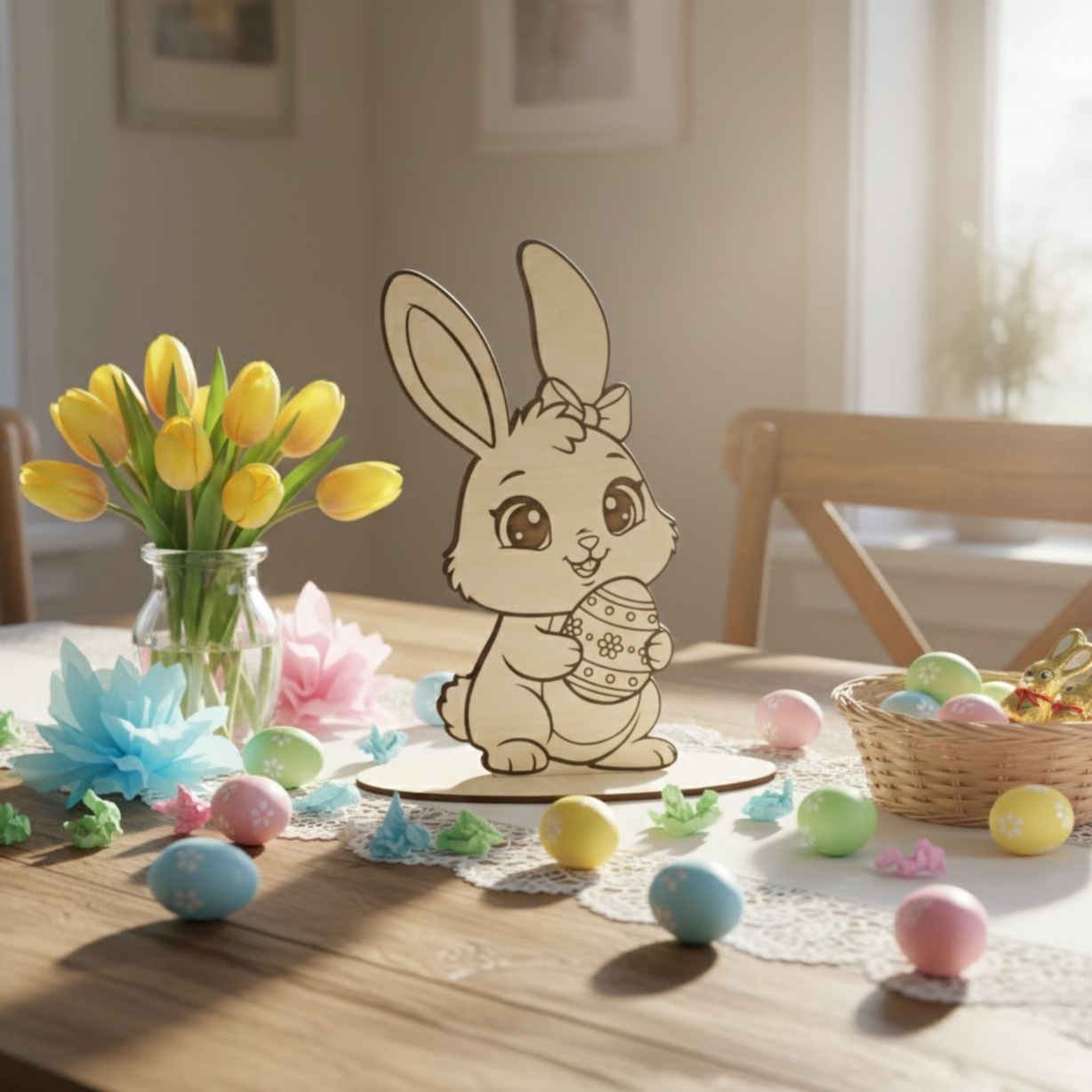 ❤️ Trwały materiał – sklejka brzozowa jest wytrzymała i odporna, dzięki czemu figurka posłuży przez wiele sezonów wielkanocnych.