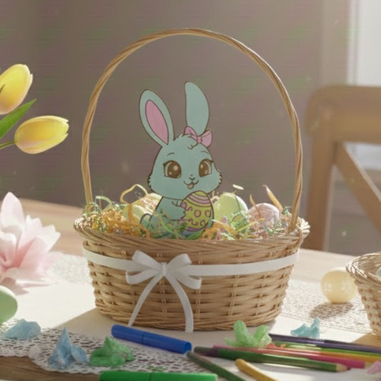 ⭐ Koszyczki wielkanocne – jako uroczy element dekoracyjny wypełniony słodyczami lub dekoracyjnymi trawami.